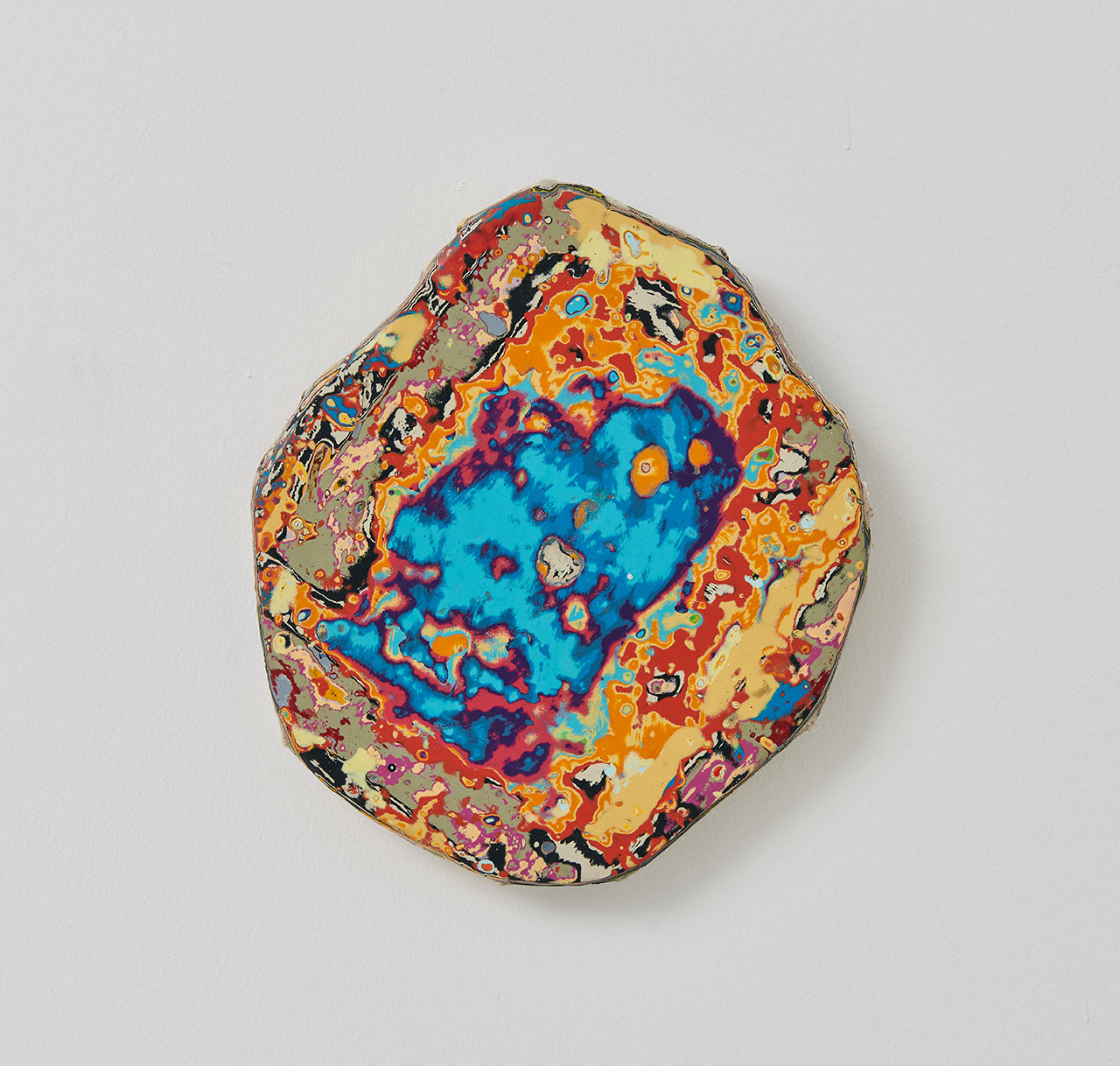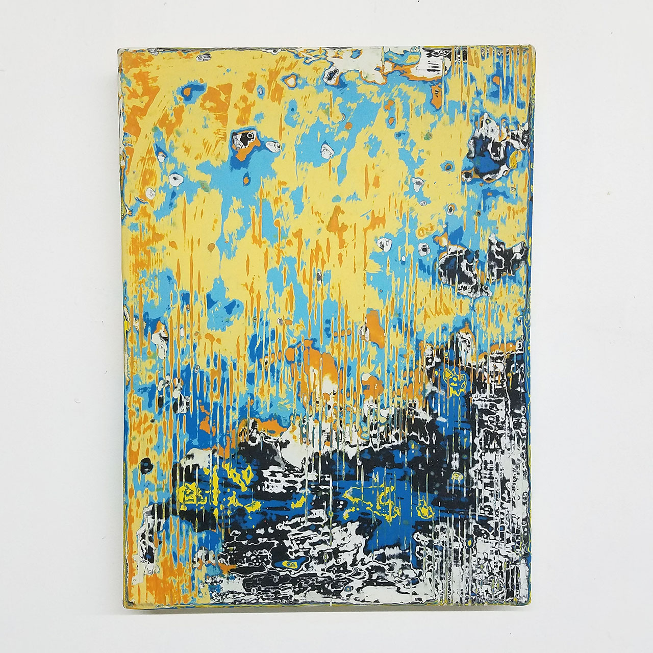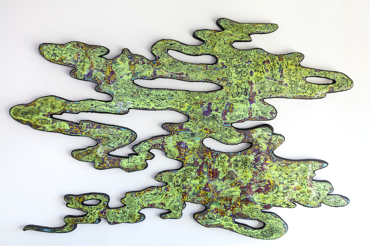The Agates are composites of the cityscape and the community I live in. Man-made paper materials are combined and eroded to reveal texts, textures, and images. In the same way, I build new terrains with painting; I reconstruct and recontextualize existing earth-building processes with materials found in the world. Over time, these pieces become community portraits, capturing time, memory, and culture in a visual capsule.